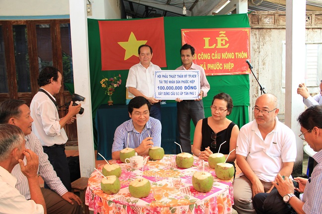 Lễ trao kinh phí và Khởi công xây dựng Cầu Bê Tông Nông Thôn Từ thiện do Hội Phẫu Thuật Thẩm Mỹ TP.HCM tài trợ đã được diễn ra vào ngày 05 tháng 10 năm 2014, tại ấp Tân Phú 1 thuộc xã Phước Hiệp, huyện Mỏ Cày Nam, tỉnh Bến Tre. Đây là xã nghèo (một trong ba xã cái nôi của Phong Trào Đồng Khởi năm 1960), với mật độ dân cư đông, hệ thống kênh rạch chằn chịt, còn rất nhiều cầu khỉ, cầu dừa tạm bợ rất khó khăn cho con em đến trường, việc đi lại giao thương cũng gặp nhiều trở ngại, nhất là vào mùa mưa lũ.