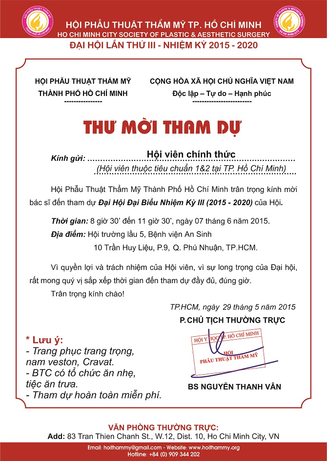 THƯ MỜI THAM DỰ ĐẠI HỘI NHIỆM KỲ 2015 - 2020