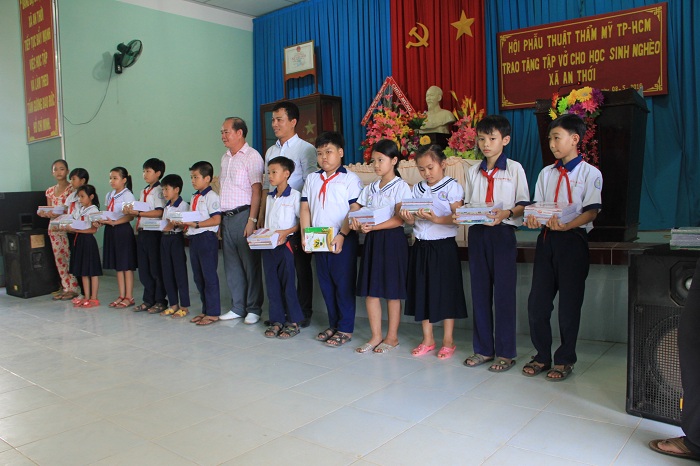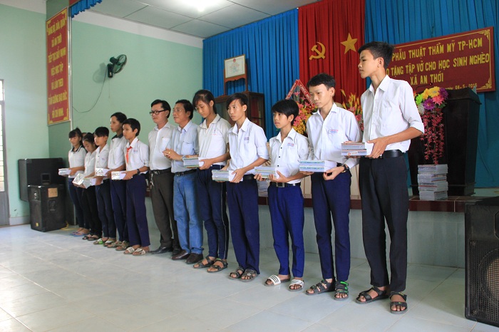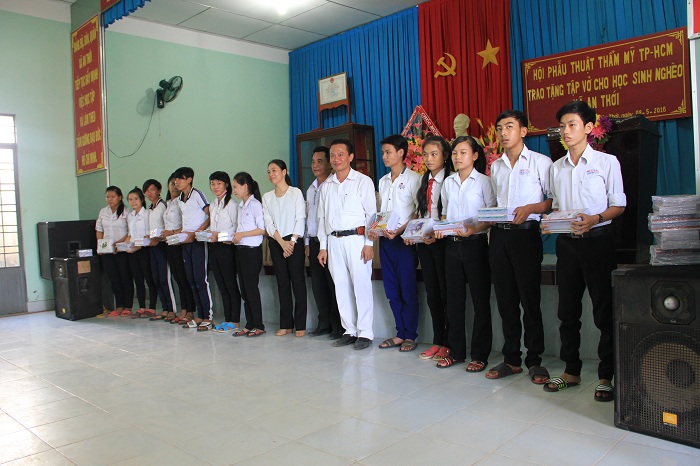 Sau chương trình Lễ Khánh Thành Cầu tại xã Long Khánh, huyện Duyên Hải, tỉnh Trà Vinh, Đoàn từ thiện tiếp tục đến xã An Thới, huyện Mỏ Cày Nam, tỉnh Bến Tre, trao tặng 3.000 quyển tập cho các em học sinh nghèo của xã. Nhân dịp này, PGS TS Lê Hành - Chủ tịch Hội Phẫu Thuật Thẩm Mỹ TP.HCM và BS Lê Văn Sẽ - Trưởng Ban Từ Thiện Hội, hội ý cùng các thành viên trong đoàn và bày tỏ mong muốn được kết nghĩa với địa phương để tiếp tục tài trợ học bổng thường niên cho các em học sinh nghèo của xã có nổ lực trong học tập, hỗ trợ các phần thưởng cho học sinh giỏi của xã vào mỗi cuối năm học. Đặc biệt, Hội sẽ hỗ trợ học bổng toàn phần ươm mầm tương lai cho các em học sinh xuất sắc có tiềm năng, sẽ được nhận học bổng và các hỗ trợ khác từ Tiểu Học, Trung Học đến hết Đại Học. Và nếu các em có nguyện vọng học Ngành Y sẽ được Hội dìu dắt và đào tạo theo nghề phẫu thuật thẩm mỹ.