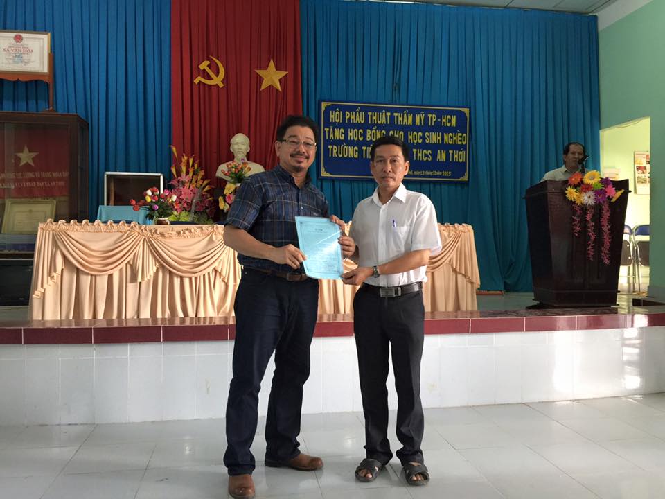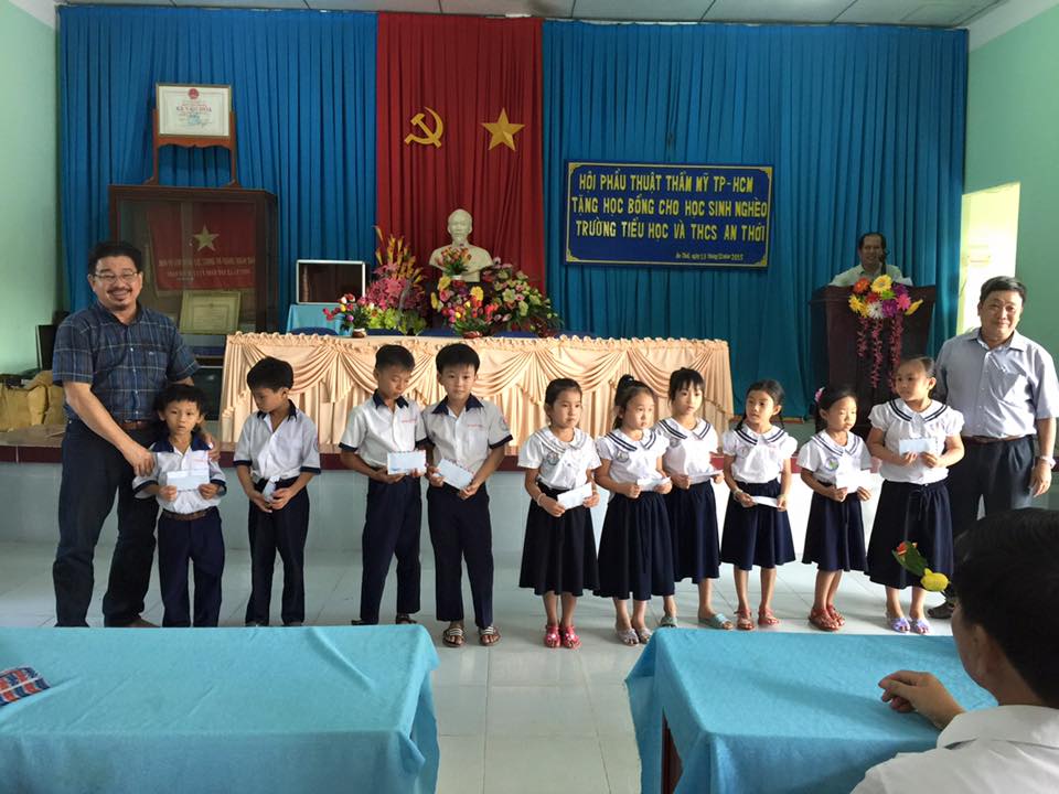 Ngoài ra, Đoàn từ thiện còn phát 42 suất học bổng trị giá 300.000đ/suất cho 42 em học sinh nghèo vượt khó, học giỏi tại các trường Tiểu Học và THCS An Thới, xã An Thới, Huyện Mỏ Cày Nam, tỉnh Bến Tre. Buổi Lễ Trao Học Bổng đã được UBND xã An Thới tổ chức rất long trọng, với sự tham dự của ông Huỳnh Văn Hải - nguyên Bí Thư Đảng Ủy Xã An Thới, hiện là Chủ tịch Hội Khuyến Học của Xã, đồng chí Trần Thanh Liêm - Chủ tịch UBND Xã An Thới, cùng các cán bộ cấp xã, Hiệu trưởng hai trường TH và THCS An Thới, phụ huynh học sinh và các em học sinh được nhận học bổng của hai trường.