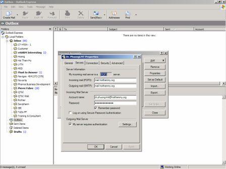 Ngoài cách sử dụng email bằng cách truy cập www.hoithammy.org , quí vị có thể cài đặt email Hội chúng ta vào Outlook Express để sử dụng cùng lúc với các email khác... Thực hiện chi tiết như bên dưới